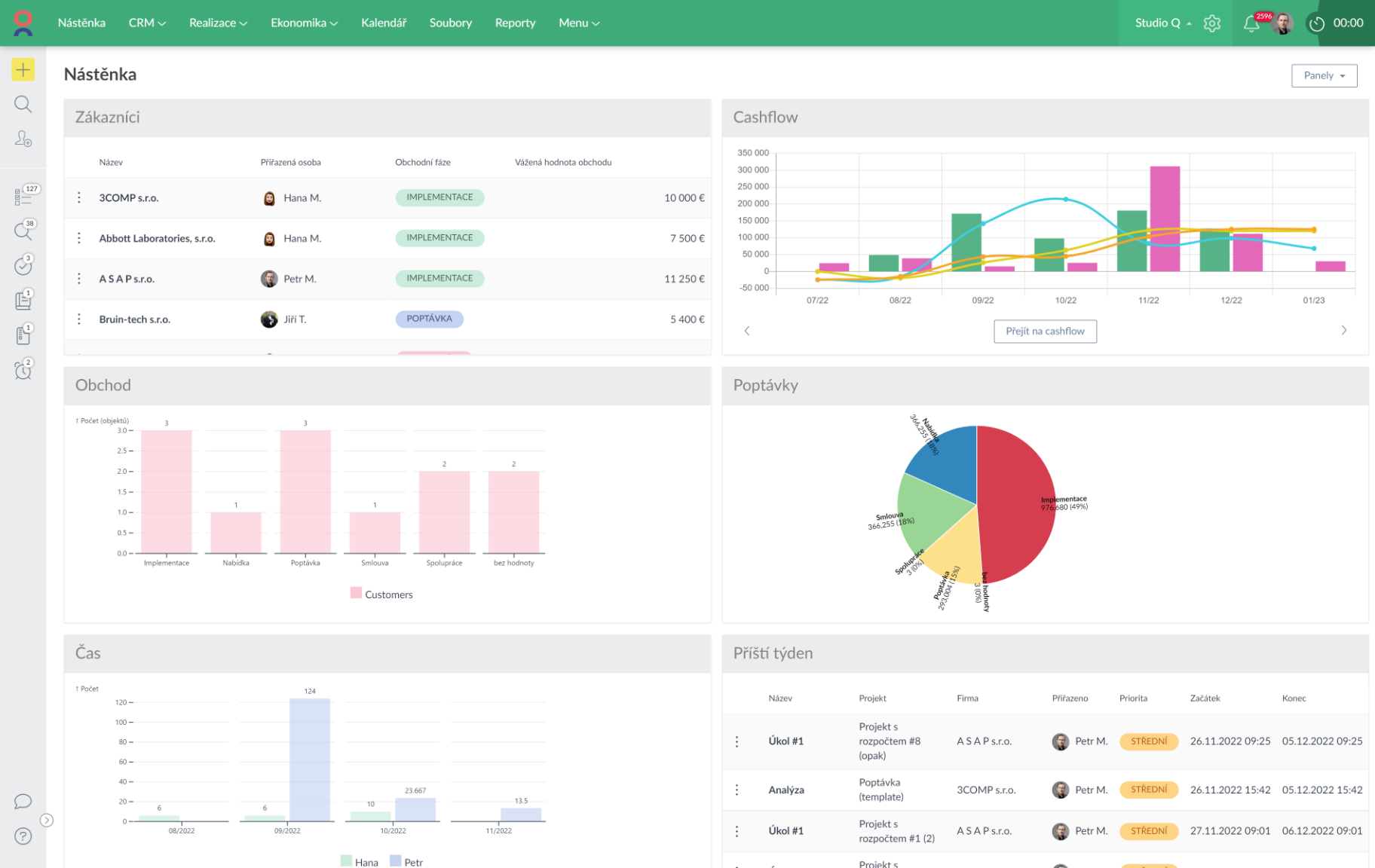 - Řízení projektů. Plánujte a kontrolujte výdaje i příjmy projektů, od položkového rozpočtu přes projektové sazby až po cash flow projektu. Komunikujte v projektech s kolegy i zákazníky pomocí komentářů, chatu, videokonference nebo e-mailu.