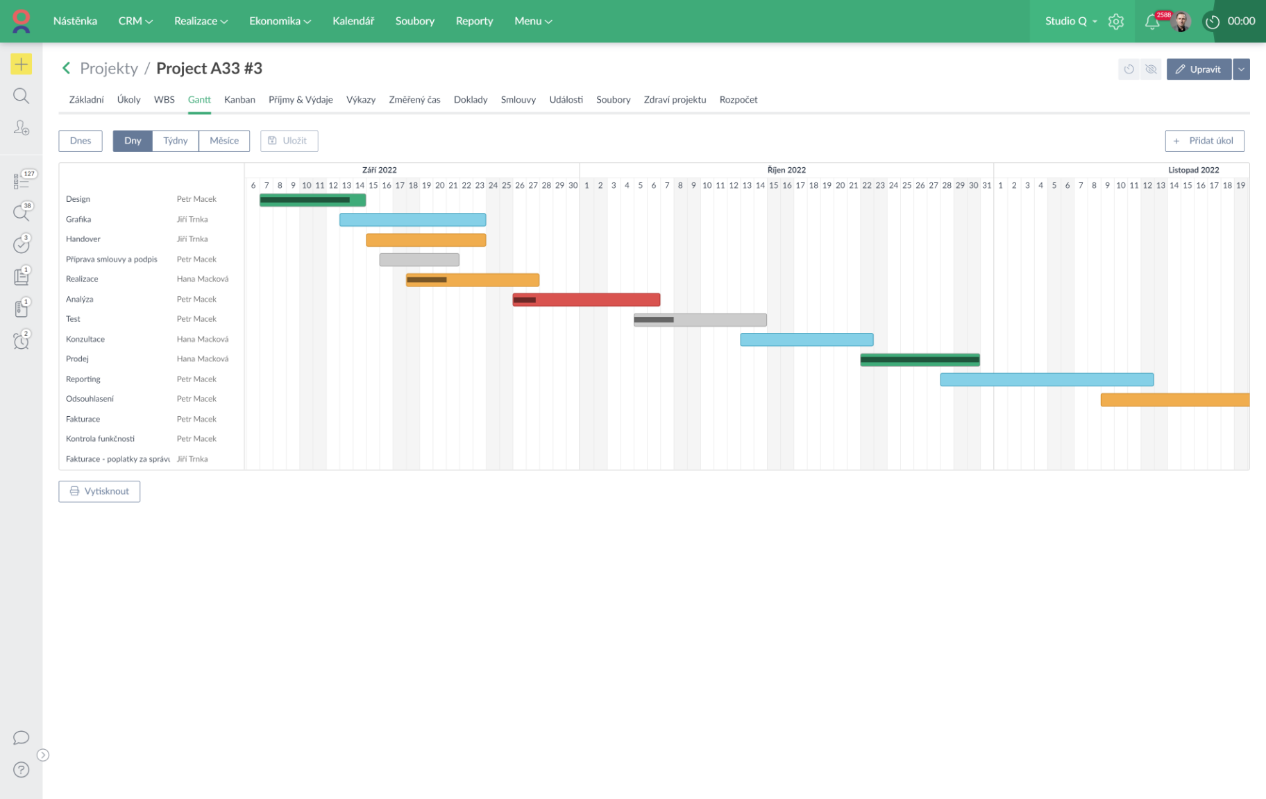 - Organizace času. Plánujte činnosti, určujte priority, delegujte úkoly, sdílejte dokumenty, komunikujte. Sledujte stav a postup projektů díky moderním nástrojům, jako je Ganttův diagram nebo nástěnky Kanban.